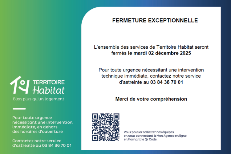 Attention ! Fermeture de Territoire Habitat le mardi 02 décembre 2025